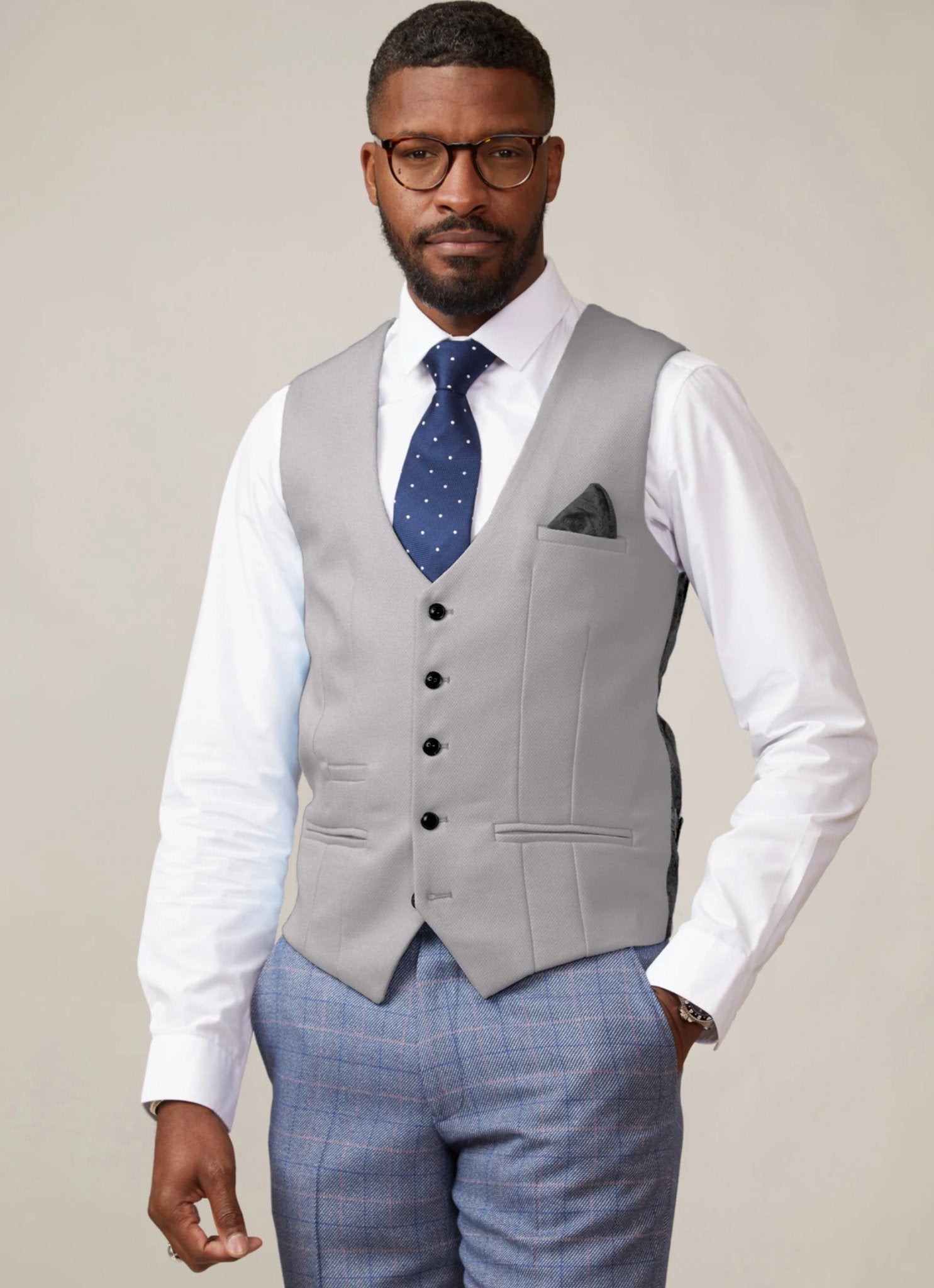 A classic silver grey will add charm to any formal look, and this kelvin waistcoat does just that. In a neutral tone, it works perfectly as a mix and match piece to break up your check suit. The bespoke MD print lining adds personality and the single-breasted design keeps it contemporary. With adjuster straps to either side you'll have the ability to nip it in to suit your preferred fit.
