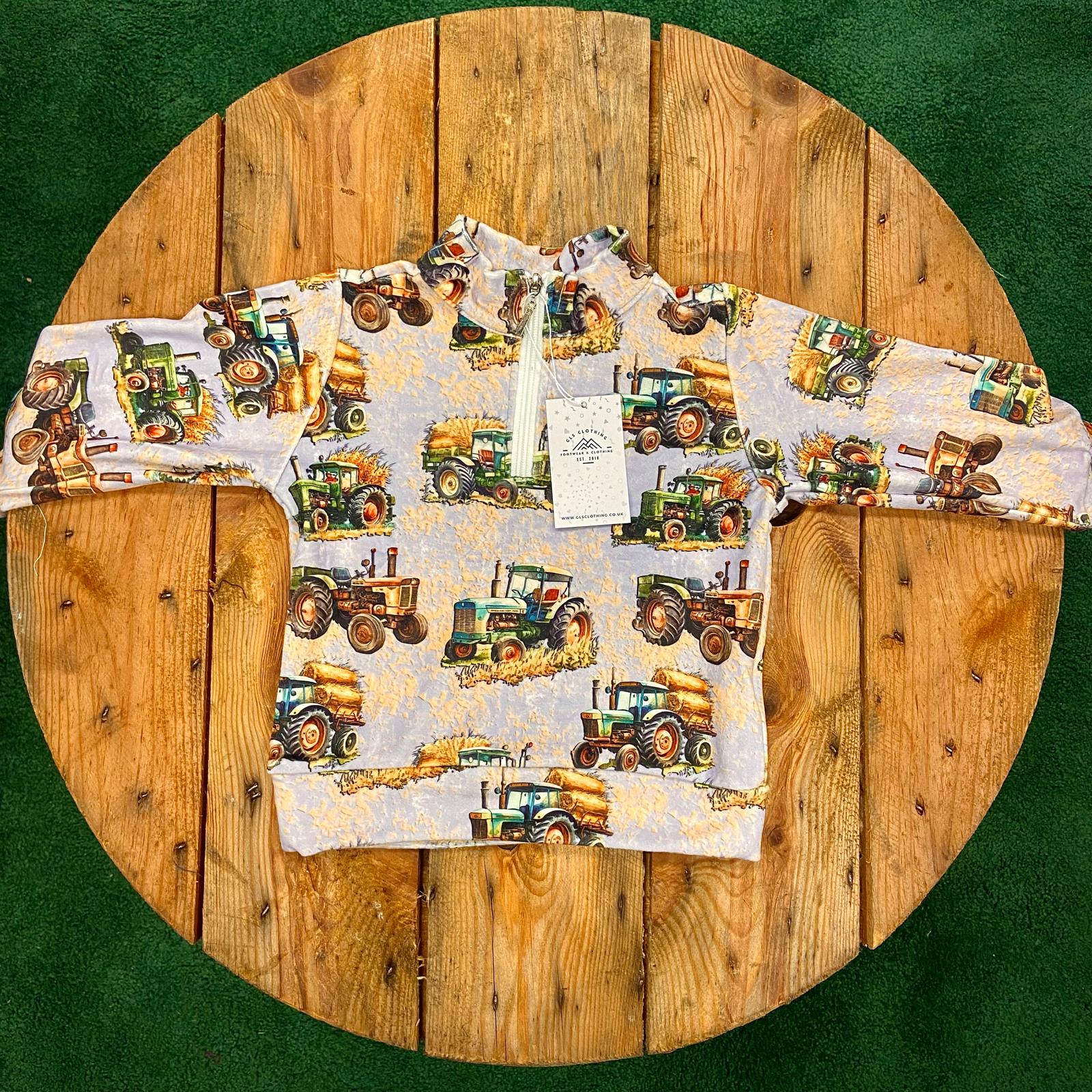 Kids - Soft Touch 1/2 zip Fleece - Green Tractor